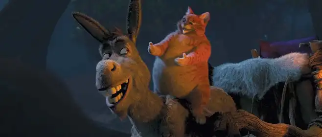 - Осёл — верный друг и комический элемент, играет важную роль в попытках Шрэка вернуться.